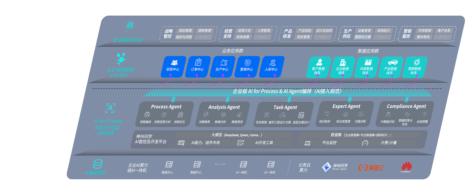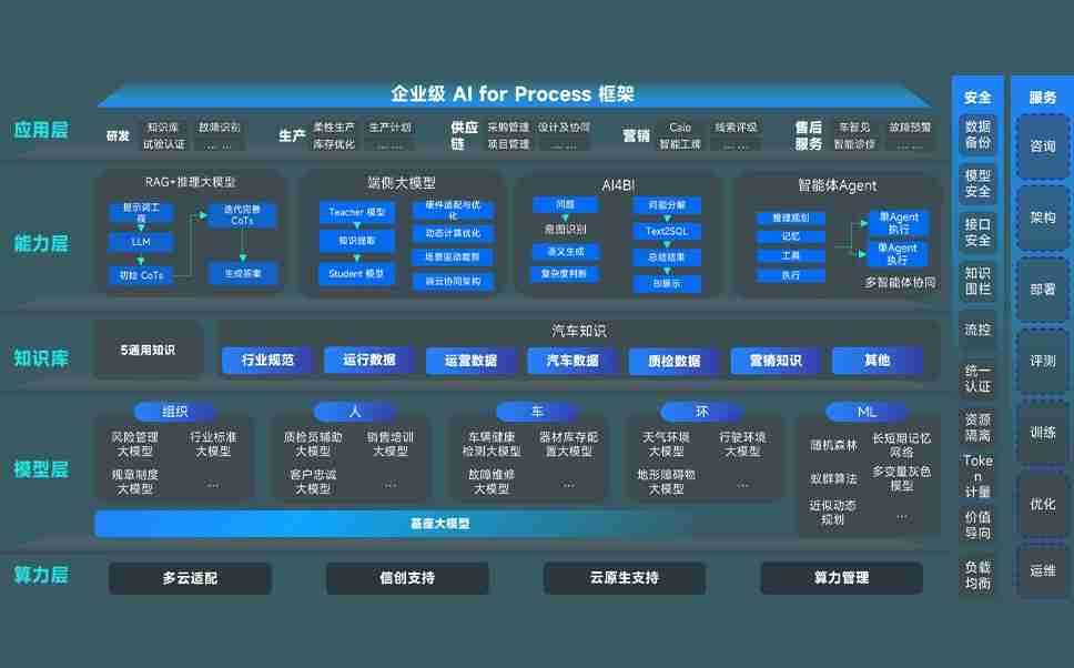 端到端的一站式AI工作空间深度融合了从企业战略规划到日常经营的全流程业务板块,,,,定向解决车企内部领域多、、、、部门多、、、、链条长、、、、场景碎片化等难题,,,,支持车企快速构建以AI为核心的生产力写作体系,,,实现任务执行与AI能力的无缝集成与交互